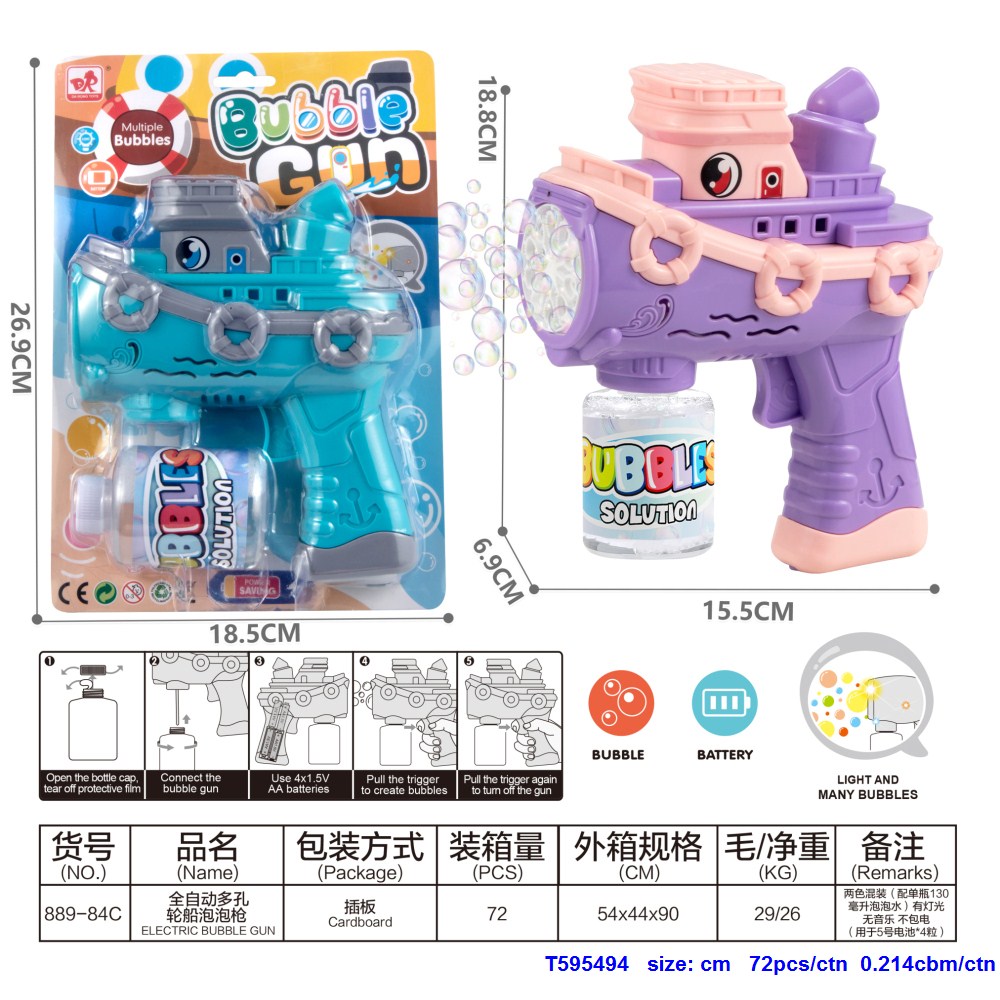 全自动多孔轮船泡泡枪 紫/蓝混装 |