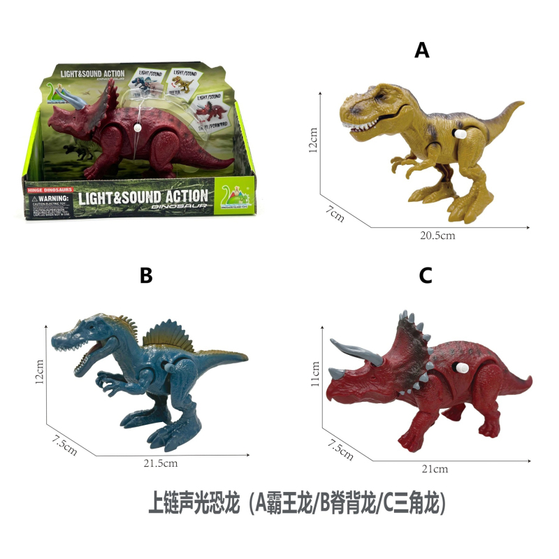 上链声光恐龙(A霸王龙/B脊背龙/C三角龙)三款混装 |