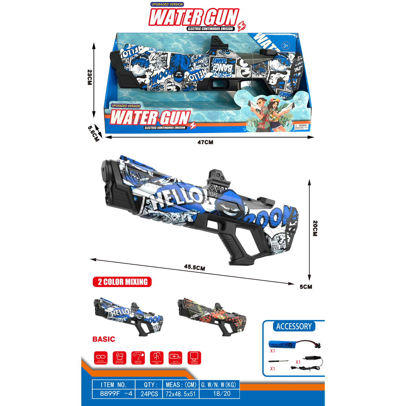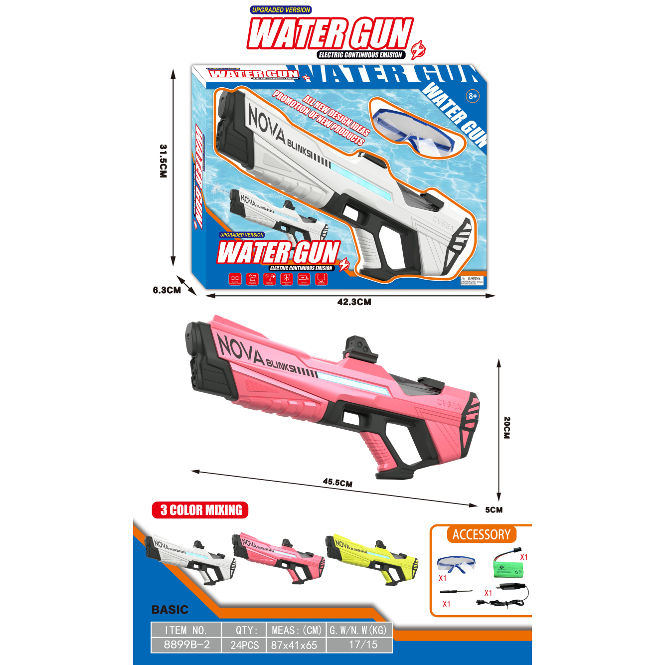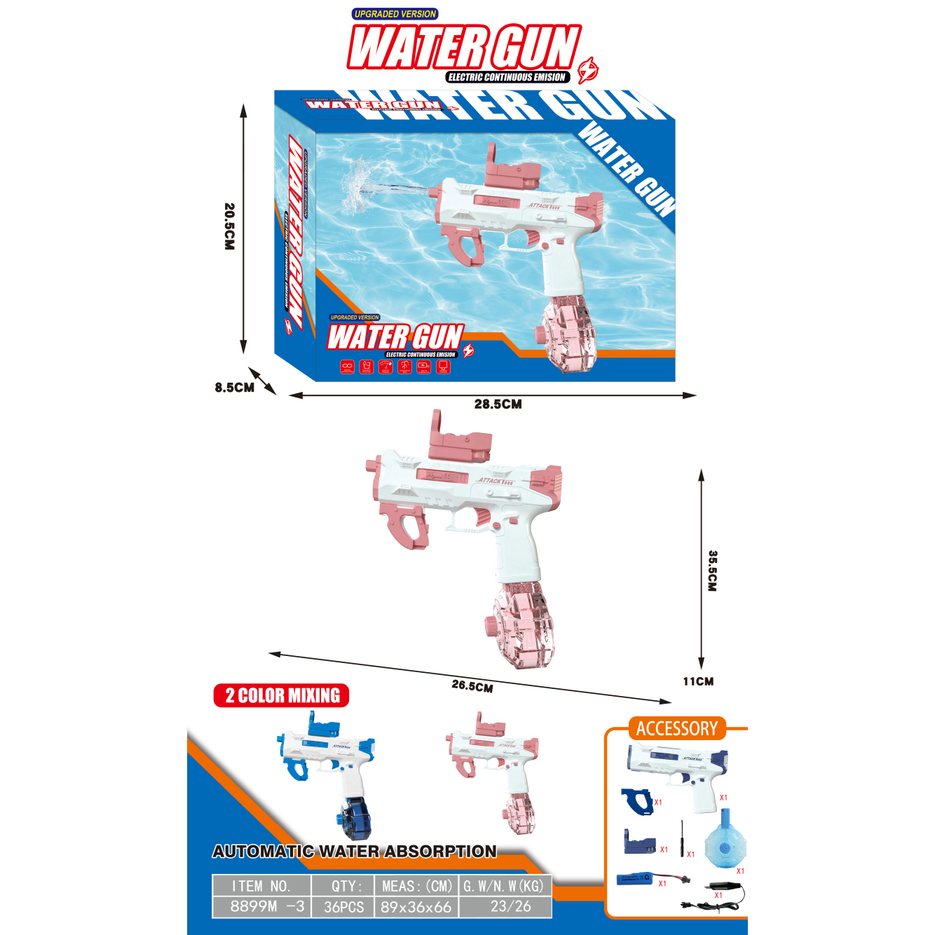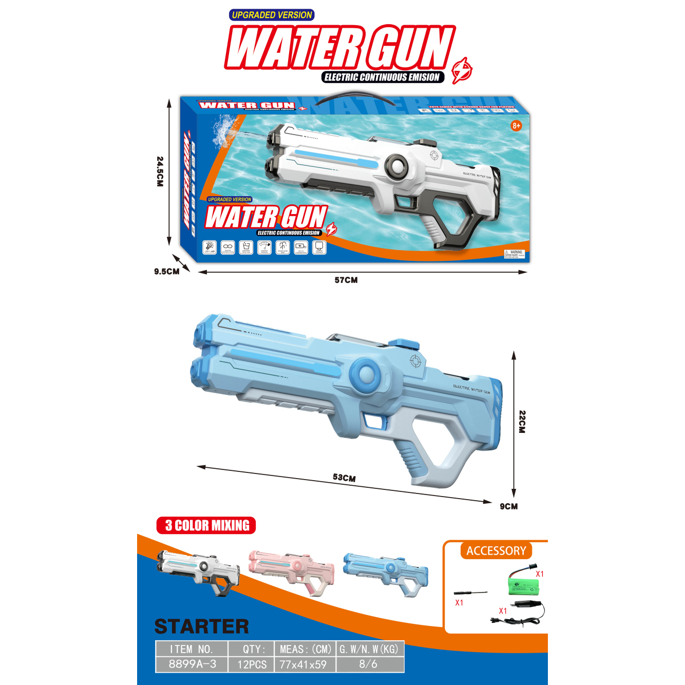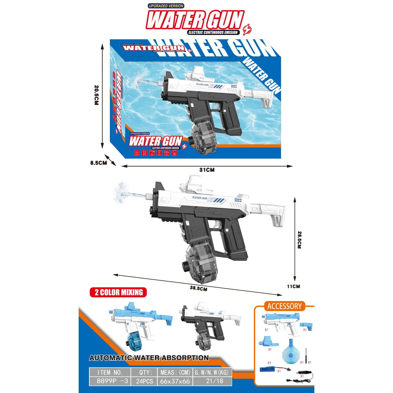 透明冰爆电动水枪+自吸版 3.7V锂电池14500-500(包电) |