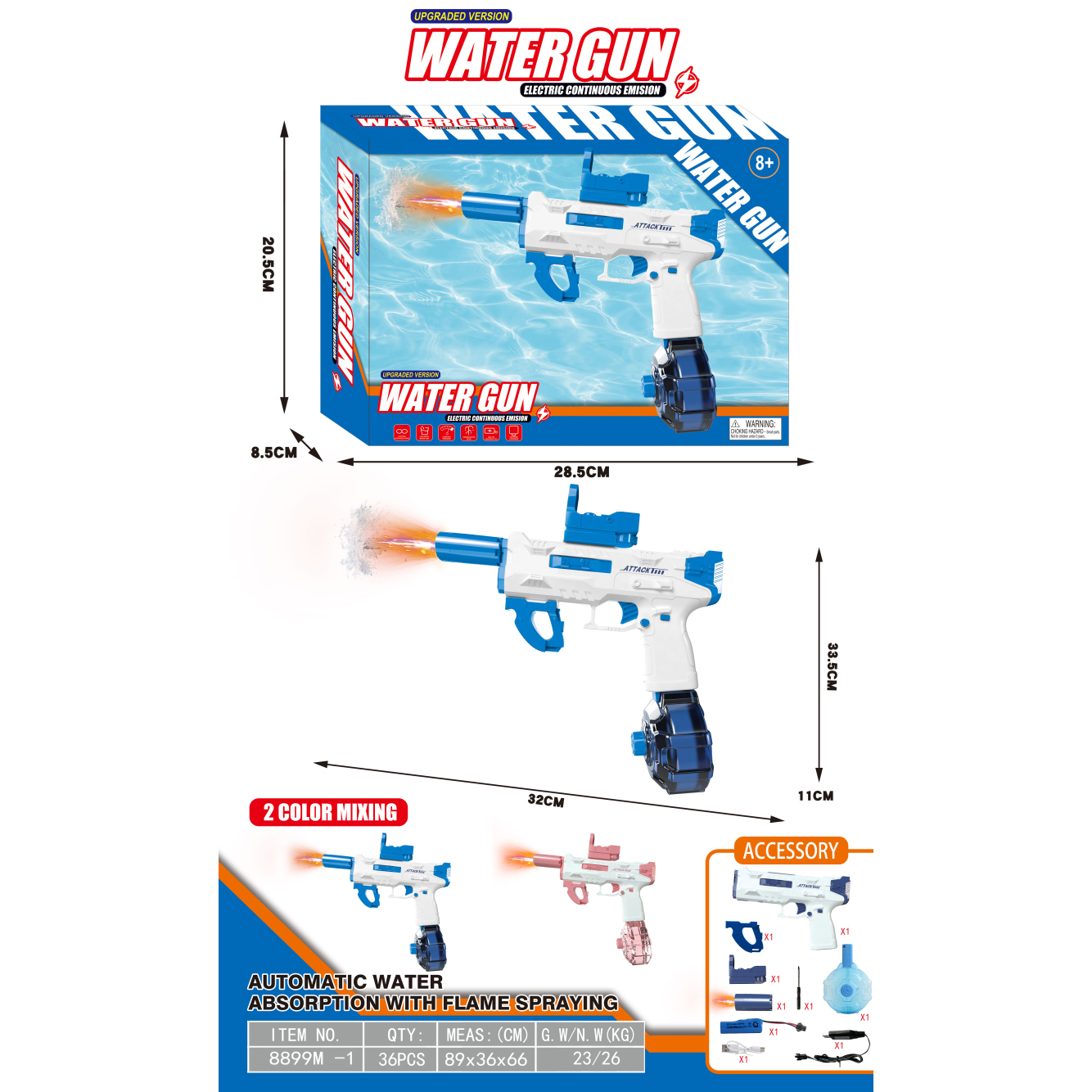 冰爆电动水枪+自吸版+爆闪喷火头 3.7V锂电池14500-500(包电) |