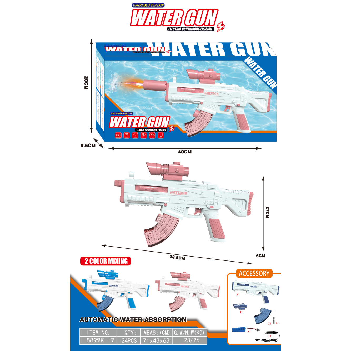 AK47电动水枪+自吸版 3.7V锂电池14500-500(包电) |