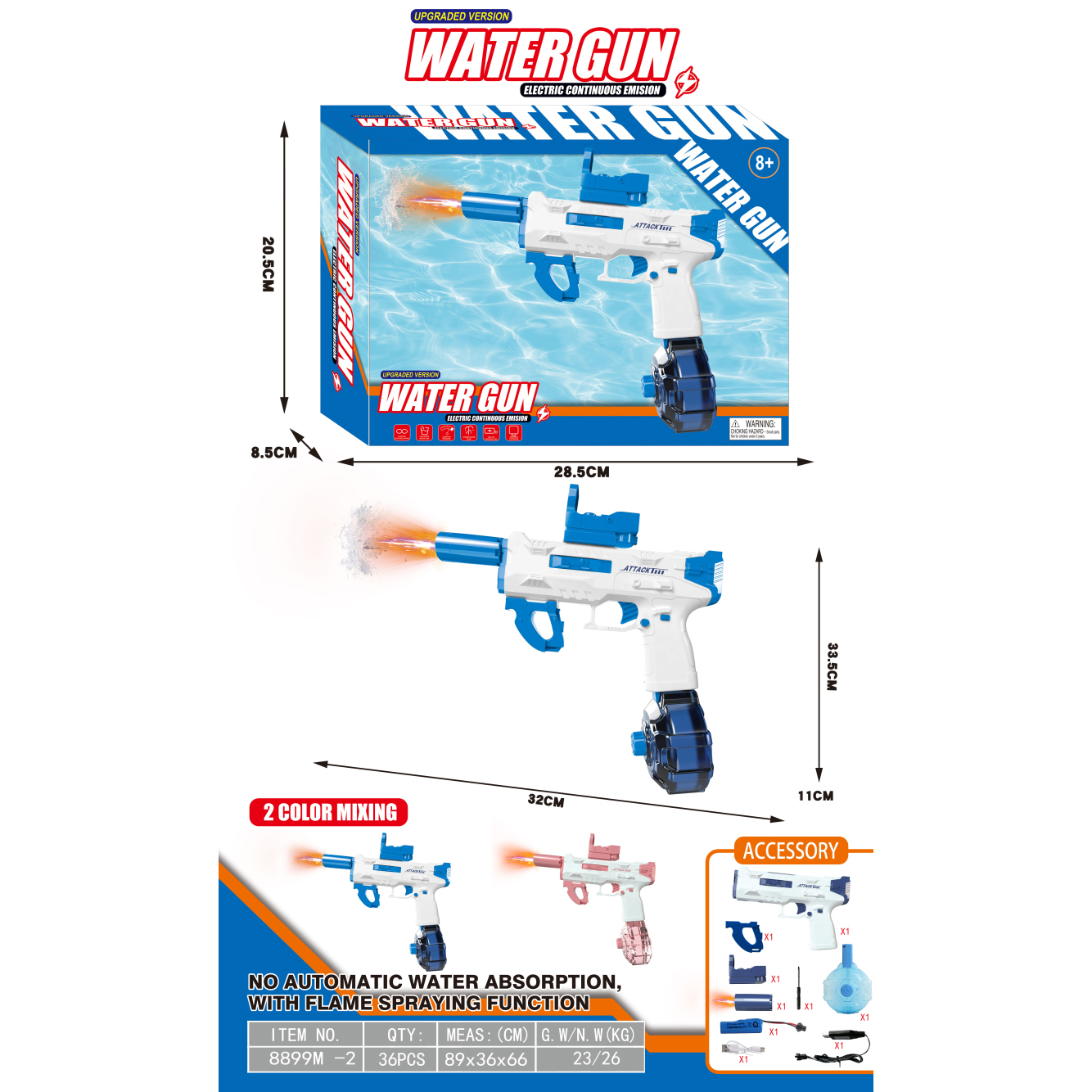 冰爆电动水枪+手动版+爆闪喷火头 500毫升 3.7V锂电池14500-500(包电) |