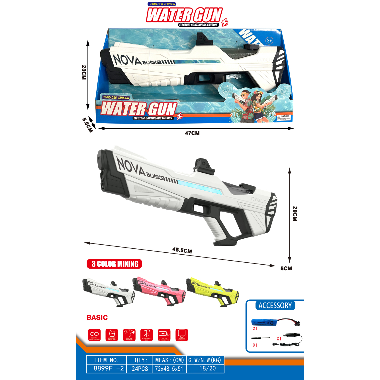 冰爆电动水枪+手动版 500毫升 3.7V锂电池14500-500(包电) |