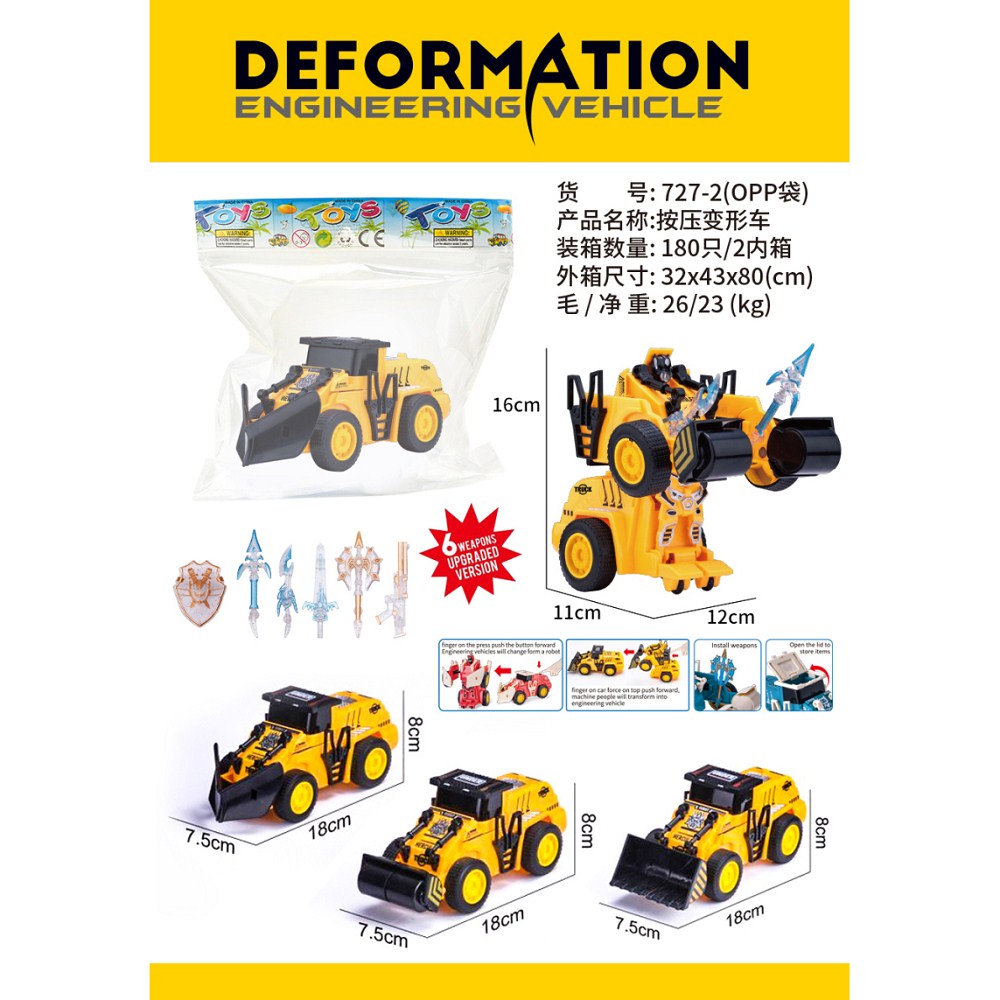 按压一键变形 变形工程车 【工程黄款式】3款混装 |