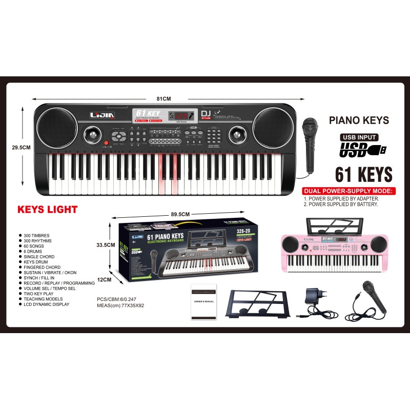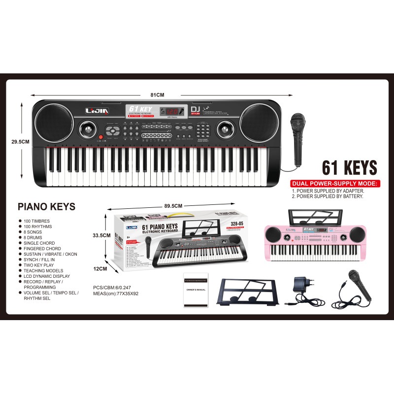 电子琴(61钢琴键、黑粉两色,说明书、乐谱架、话筒、9V适配器) |