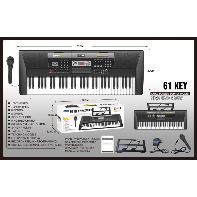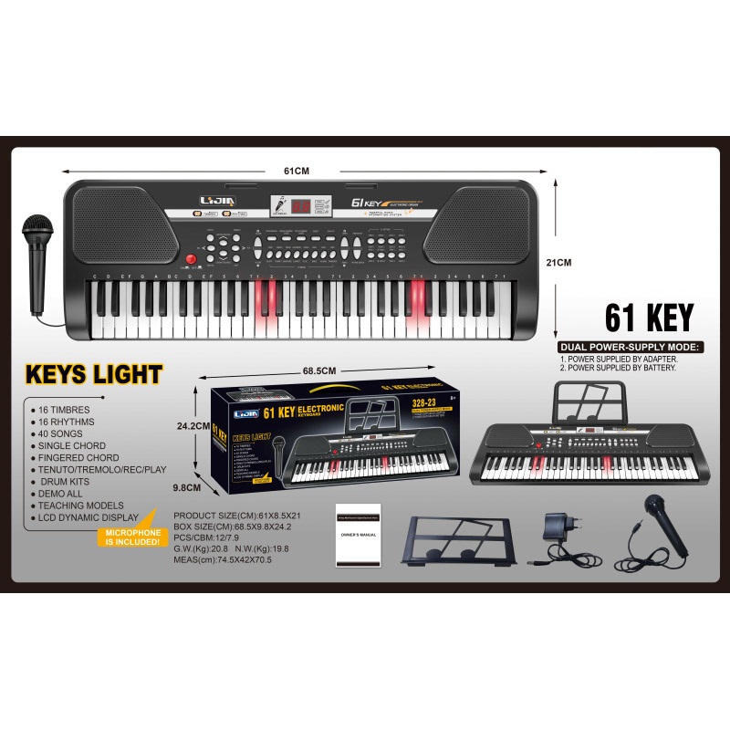 电子琴(61键、灯光版、说明书、乐谱架、话筒、9V适配器) |