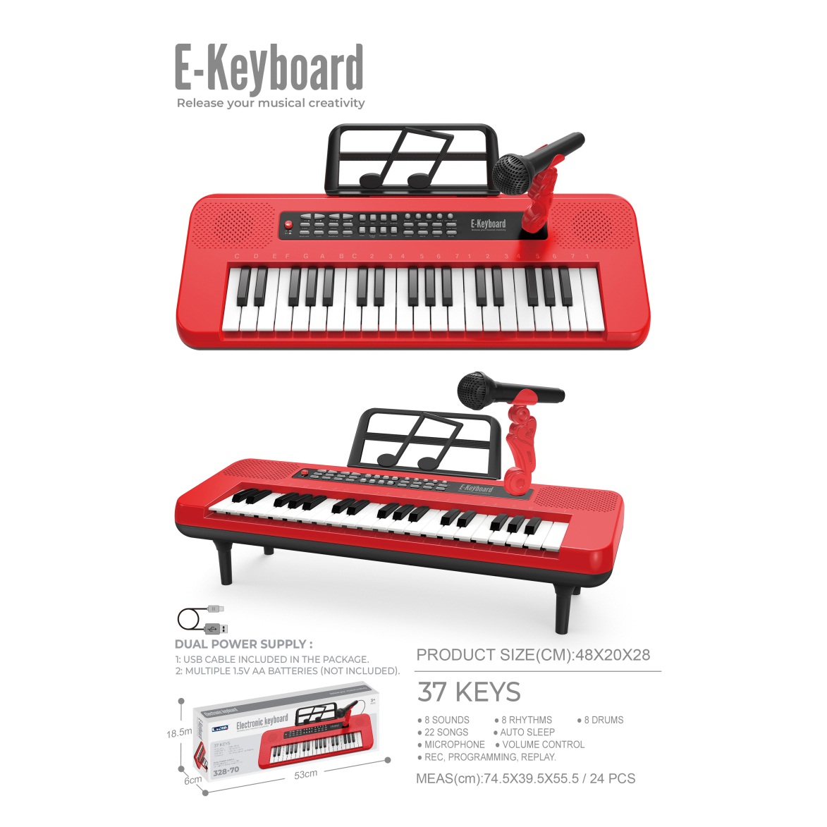 电子琴(37键、红色、说明书、乐谱架、话筒、USB供电线) |