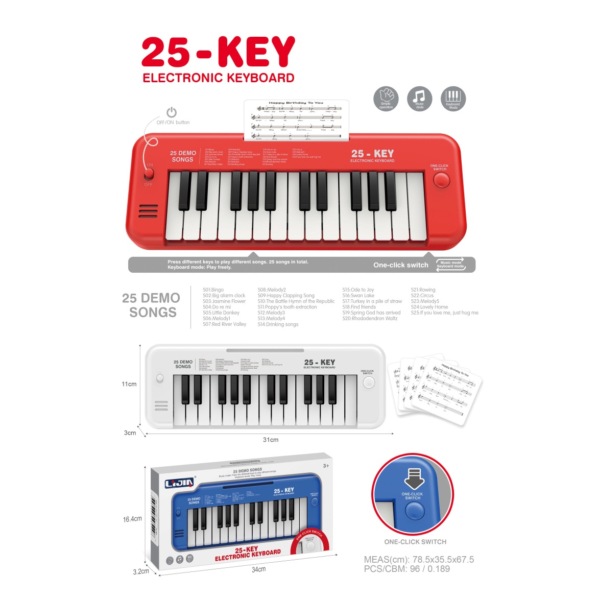 电子琴(25键、说明书、乐谱架、话筒、USB供电线) |