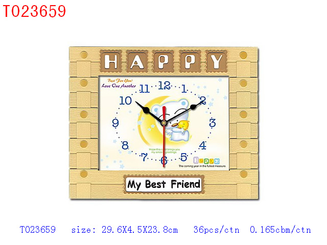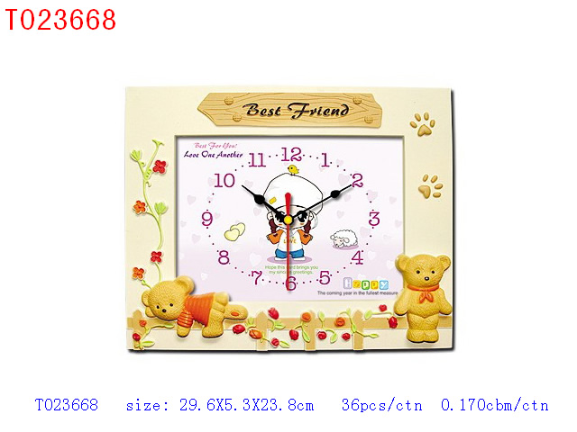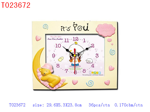 木纹相架钟无音乐报时、八种卡通图案 |