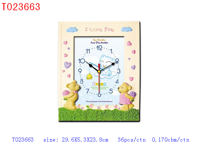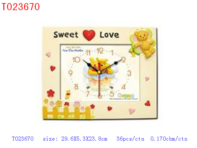 桃心双熊相架钟无音乐报时、八种卡通图案 |
