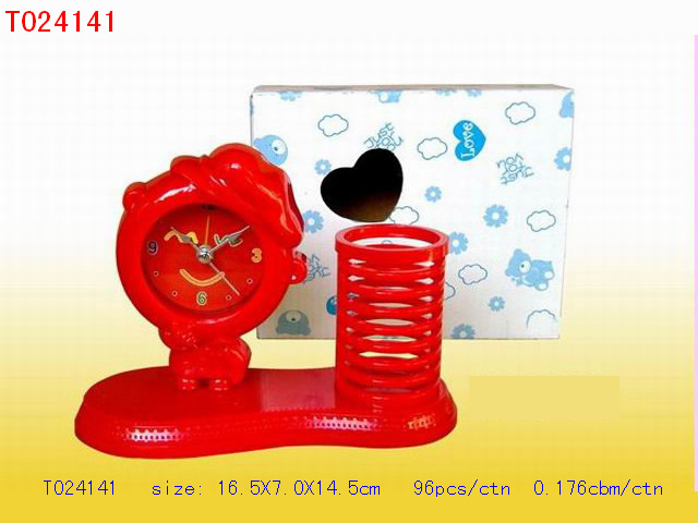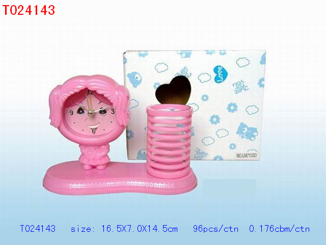 小女孩闹钟笔筒(大红,绿,黄,兰,粉红) |