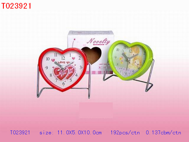 桃心铁架小闹钟(黄,大红,粉红,玫红,蓝,绿,黑) |