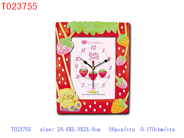 草莓相架钟无音乐报时、八种卡通图案 |