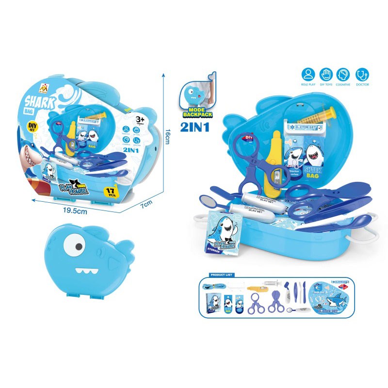 卡通益智儿童仿真鲨鱼造型医具角色扮演套装小背包过家家玩具17PCS |
