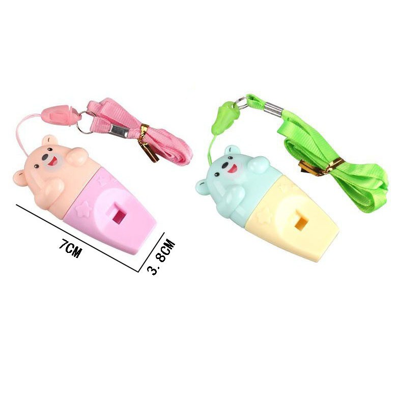 Whistle with string toy pink-green. |